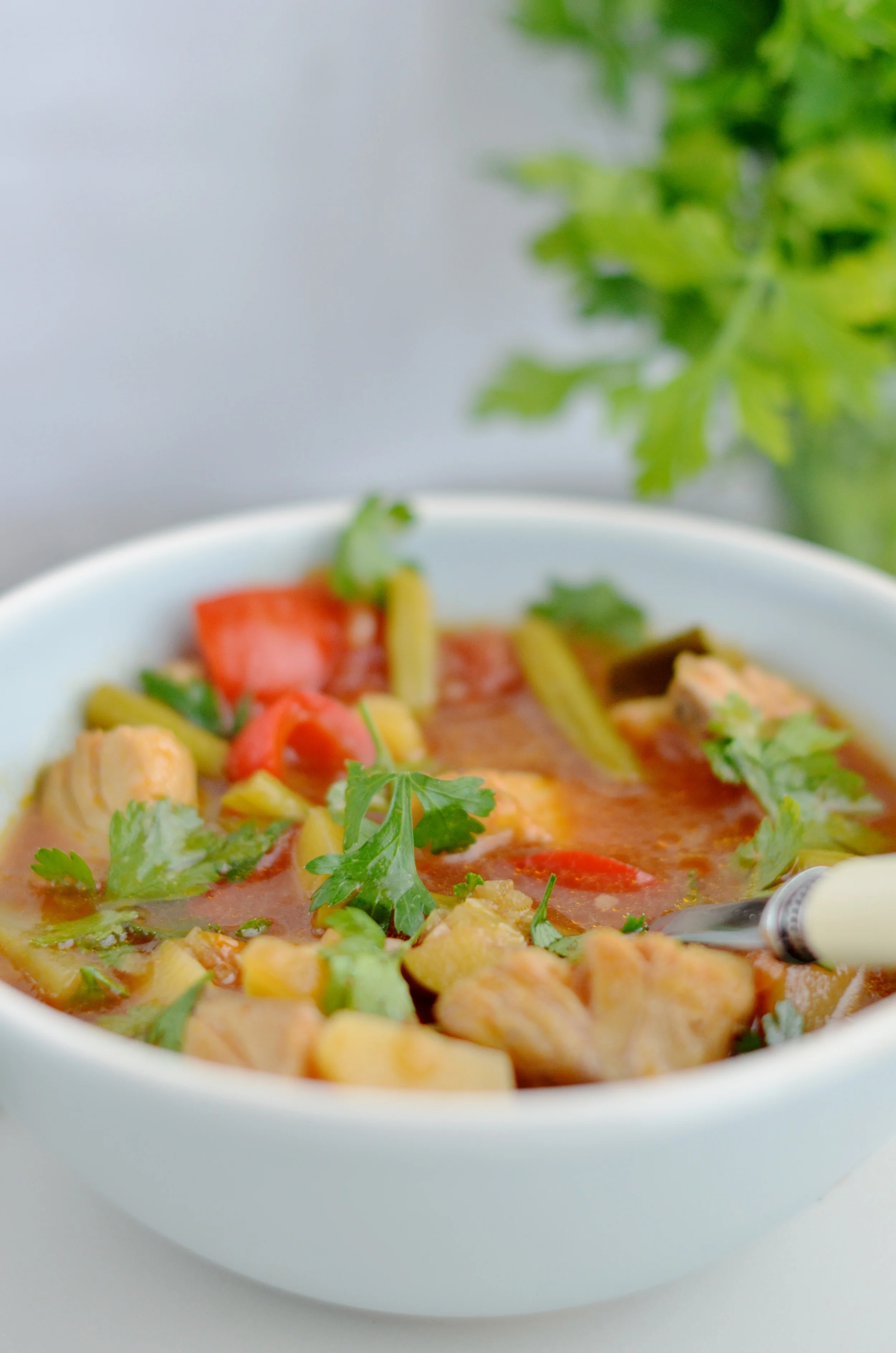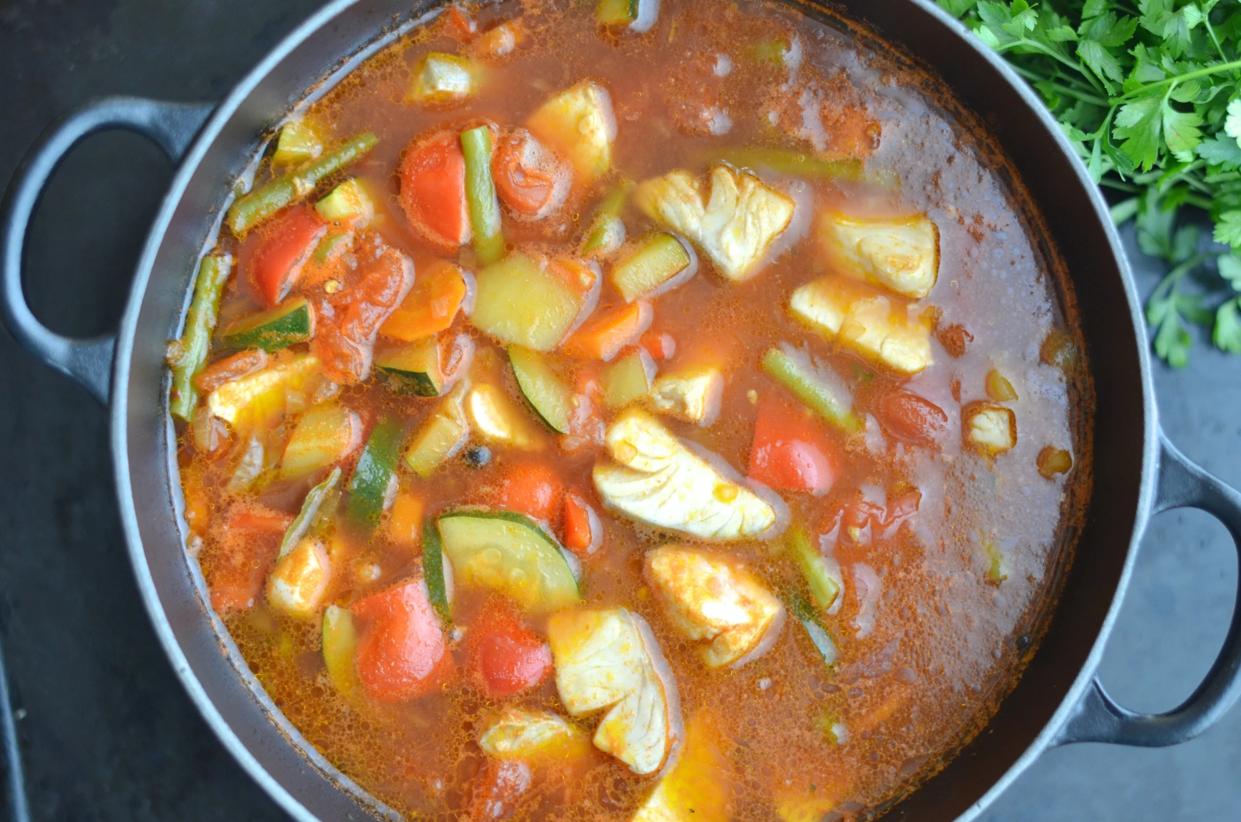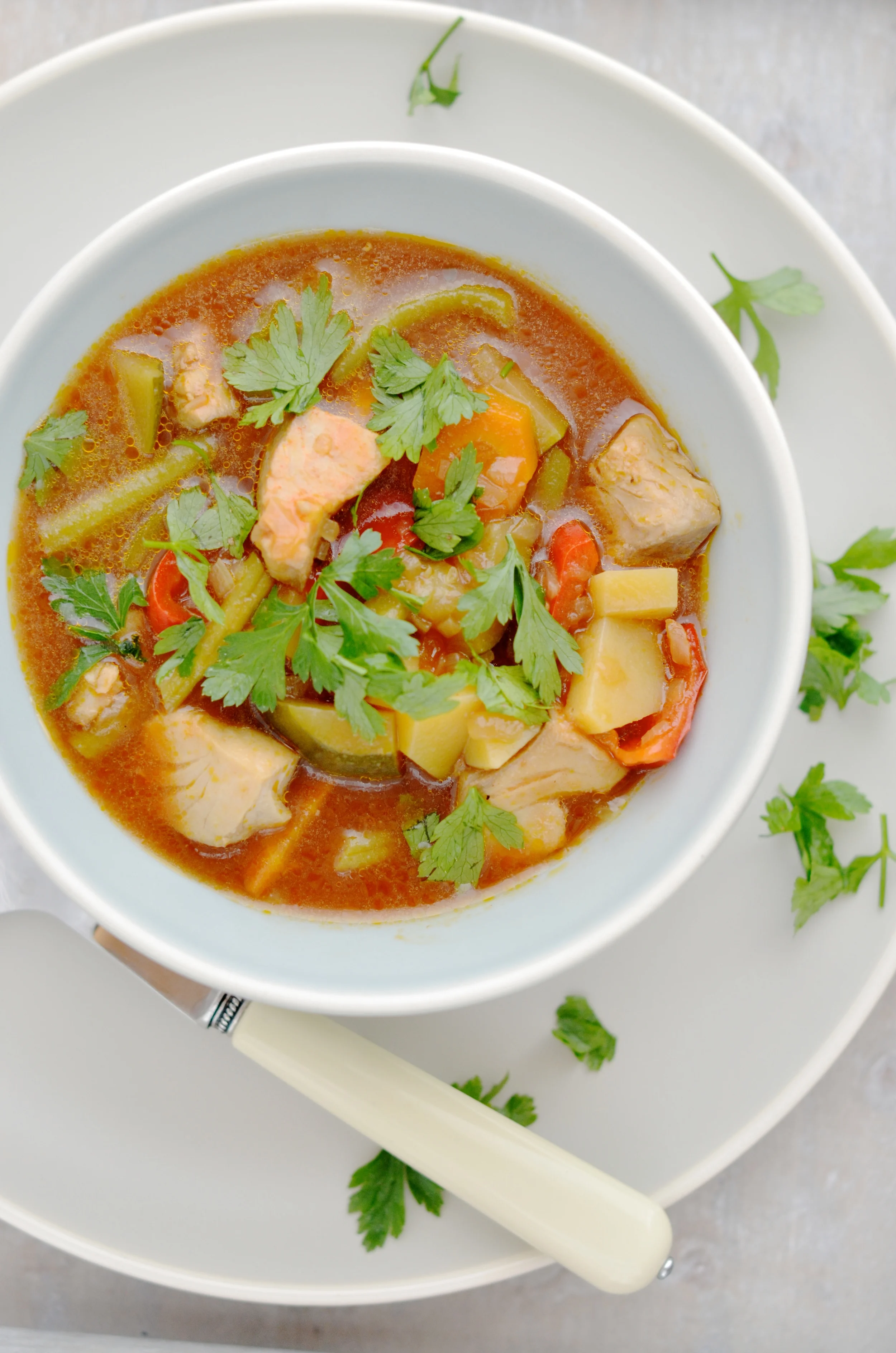 Ten chard to bardzo gęsta potrawka rybna z dodatkiem pomidorów, idealna na jesienne i zimowe dni, sycąca i rozgrzewająca. Jeśli zachowamy kolejność dodawania warzyw, to pozostaną one jędrne i nie rozgotują się. W oryginalnym przepisie autor używa filetów z dorsza, ale możemy go zastąpić inną rybą. Zachęcam do sprawdzenia tutaj – klik, czy ryba, którą kupujemy, nie jest zagrożona wyginięciem. Na opakowaniu ryb mrożonych powinien być certyfikat MSC.