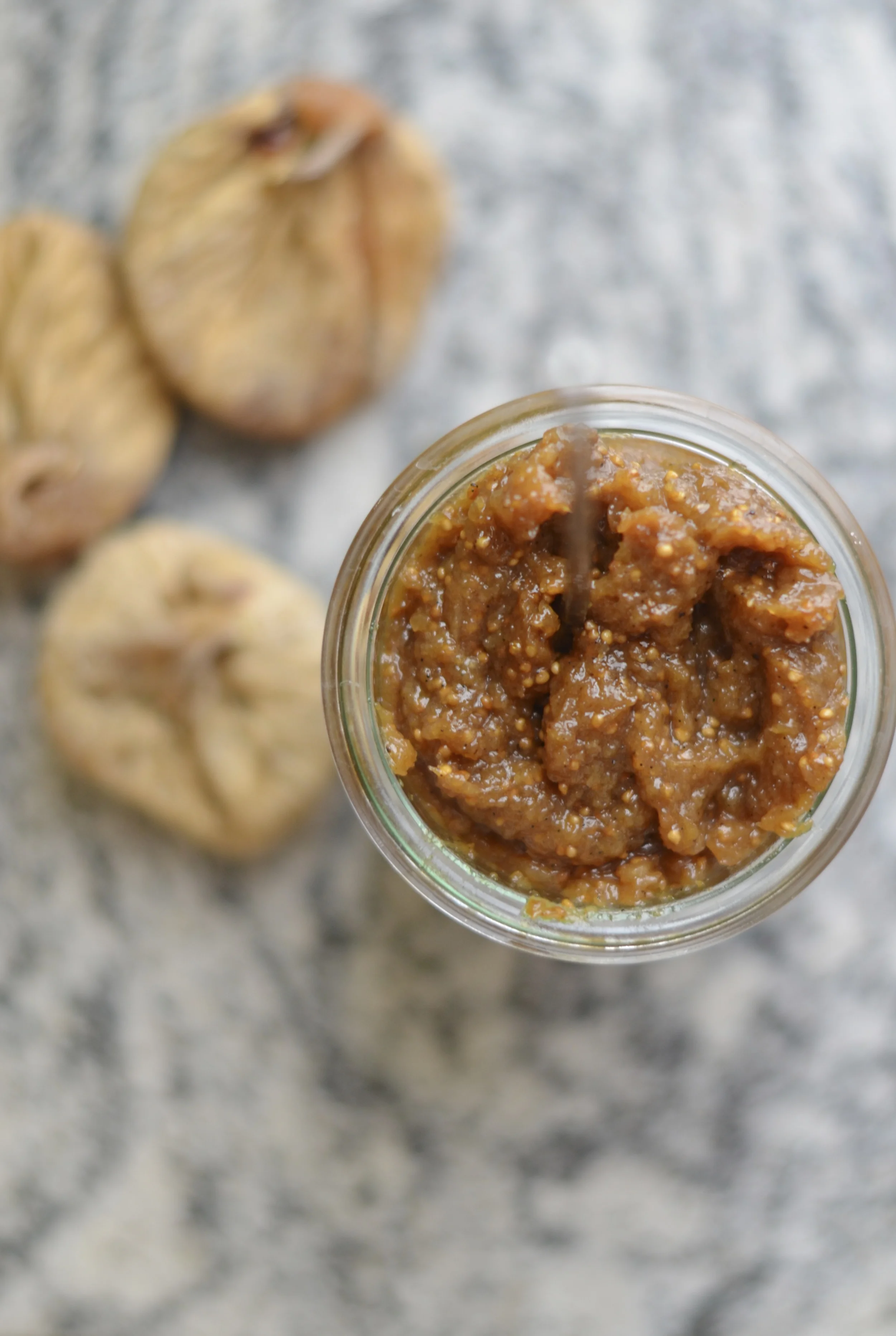 Figi kroimy na małe kawałki, wkładamy do niedużego garnka, dodajemy 1/2 szklanki wody lub naparu z rooibosa, sok z cytryny, sól, wanilię i opcjonalnie skórkę otartą z cytryny. Nakrywamy pokrywką i gotujemy na małym ogniu przez około 10 minut (jeśli trzeba to podlewamy wodą). Studzimy i miksujemy na jednolitą masę.