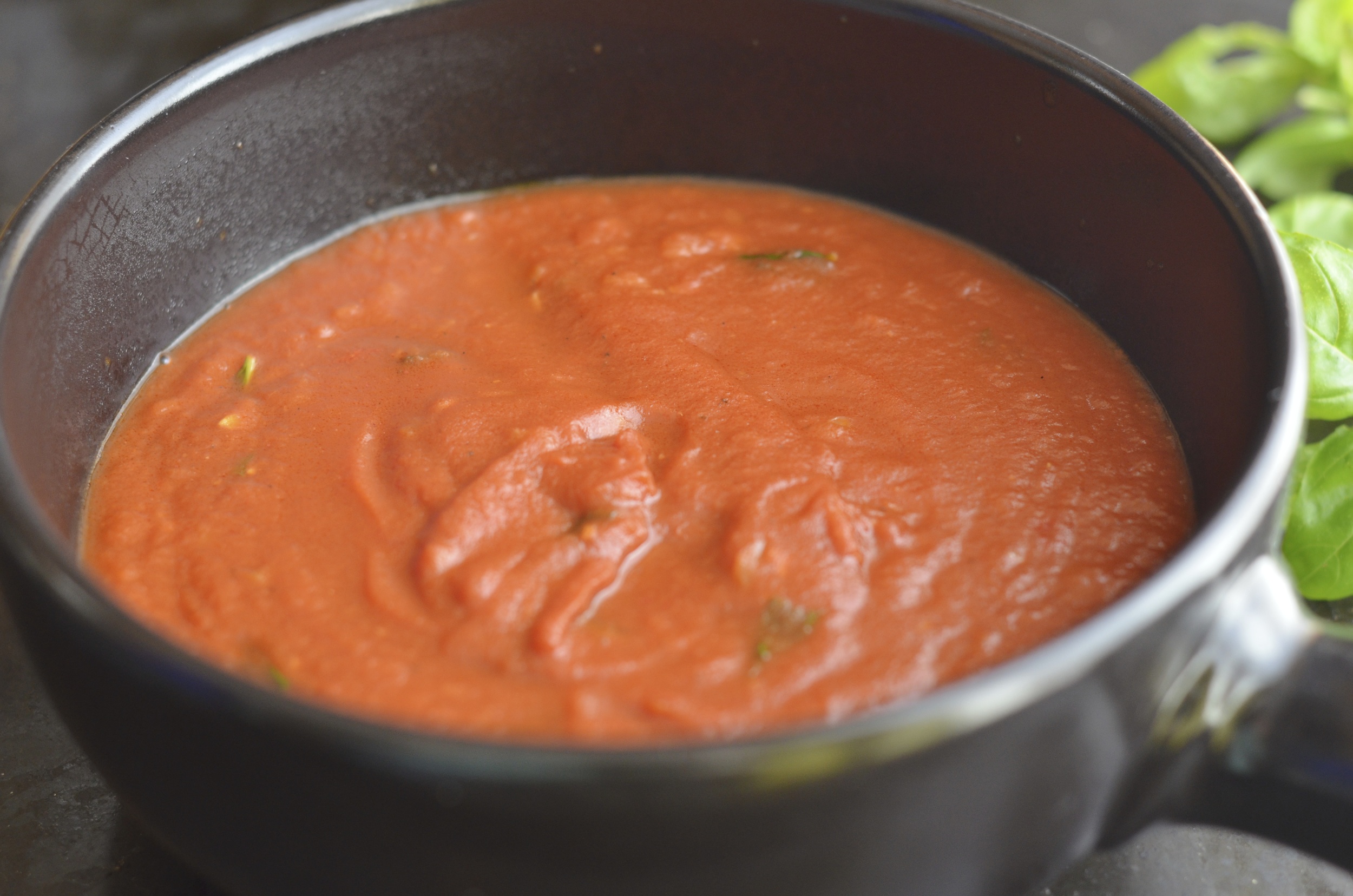 Przy okazji podam przepis na mój ulubiony, podstawowy sos pomidorowy. Sos uniwersalny, można go użyć do makaronu, pizzy, zapiekanek…