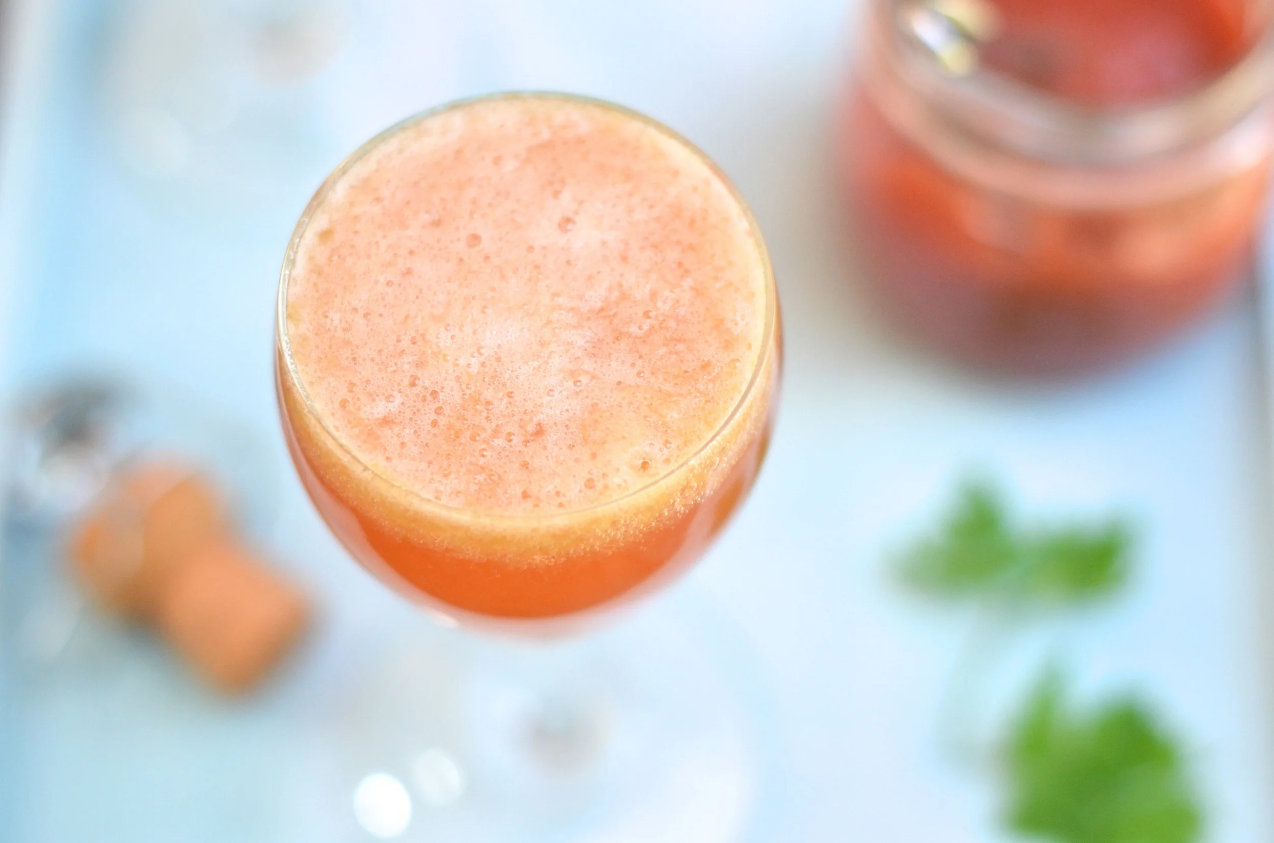 Orzeźwiający napój z musu rabarbarowego i Prosecco. Polecam na leniwe, upalne popołudnie.