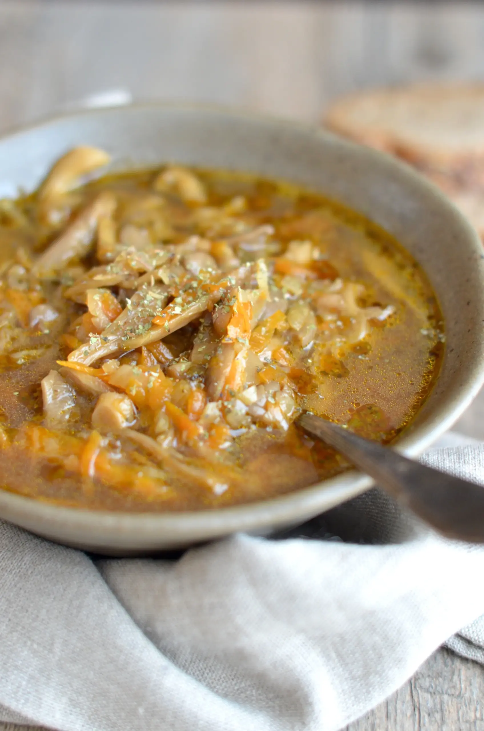 Jeśli ktoś tęskni za flaczkami, a niekoniecznie chce wracać do tych oryginalnych, to polecam wersję wegetariańską – z boczniaków.